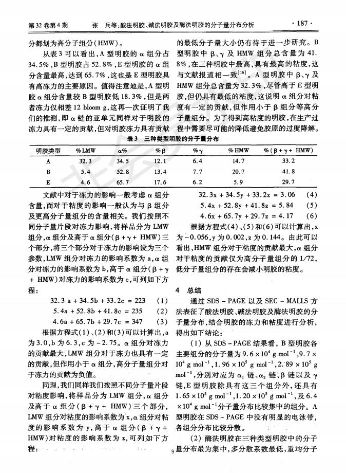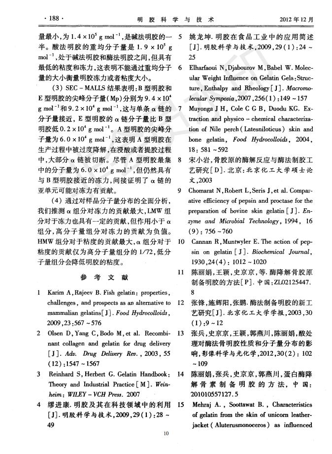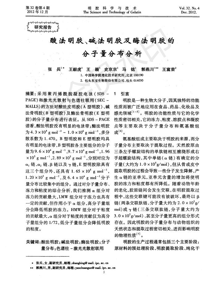 Analysis and Distribution of Molecular Weight of Acid Method Gelatin, Alkaline Method Gelatin and En