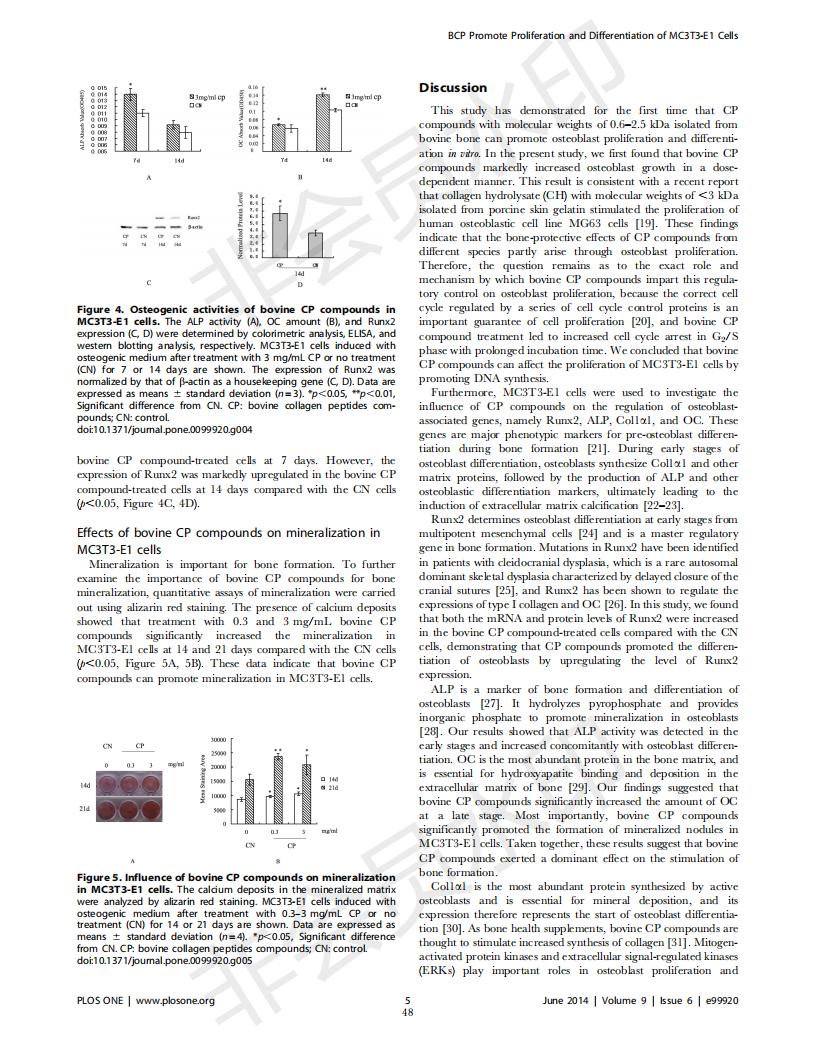 Bovine collagen peptide promotes the proliferation and differentiation of MC3T3-E1 osteoblasts