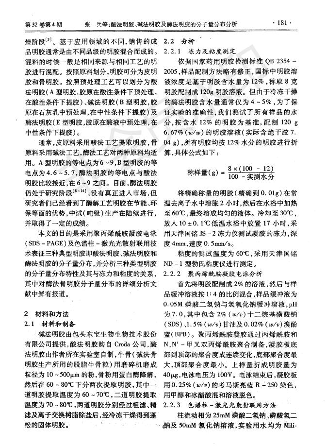 酸法明膠、堿法明膠及酶法明膠的分子量分析分布分析