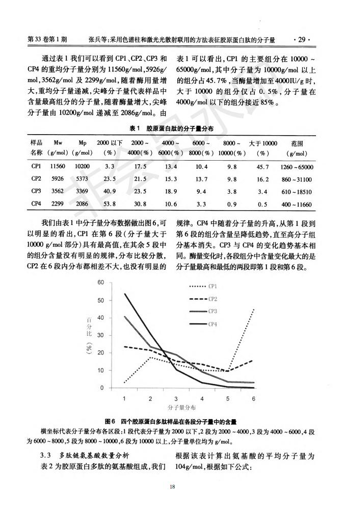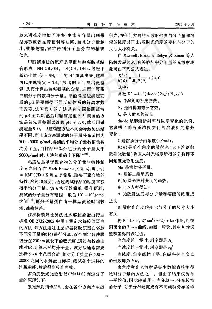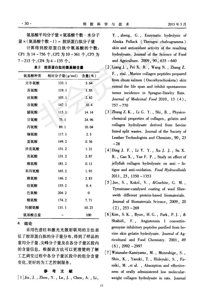 采用色譜柱和激光光散射聯用的方法表征膠原蛋白肽的分子量