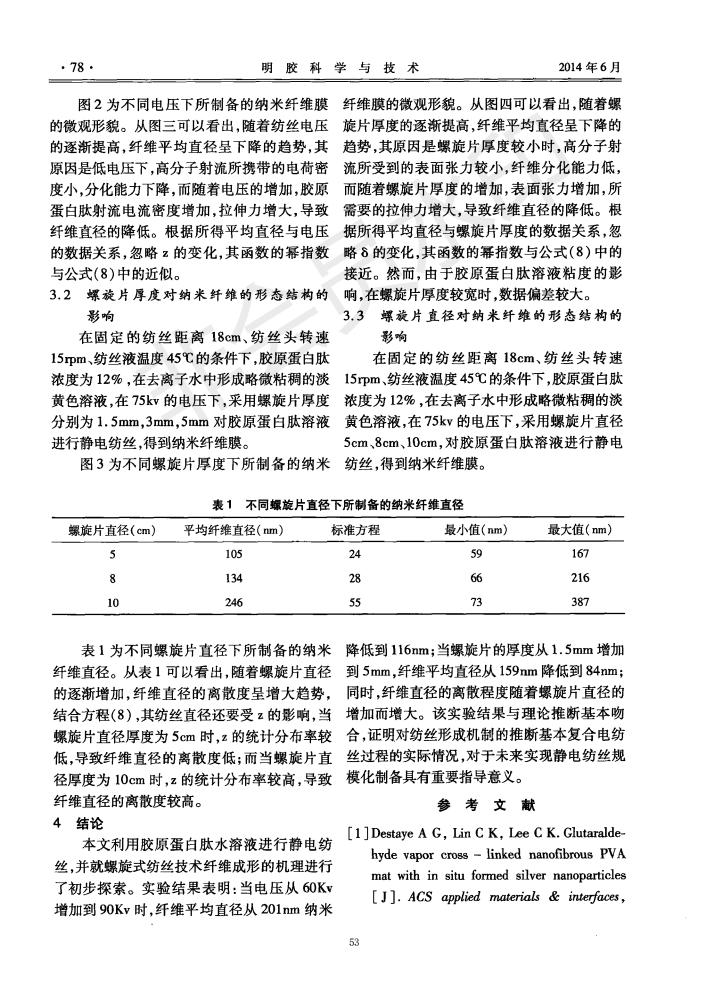用螺旋靜電紡絲技術制備膠原蛋白肽納米纖維及其機理研究