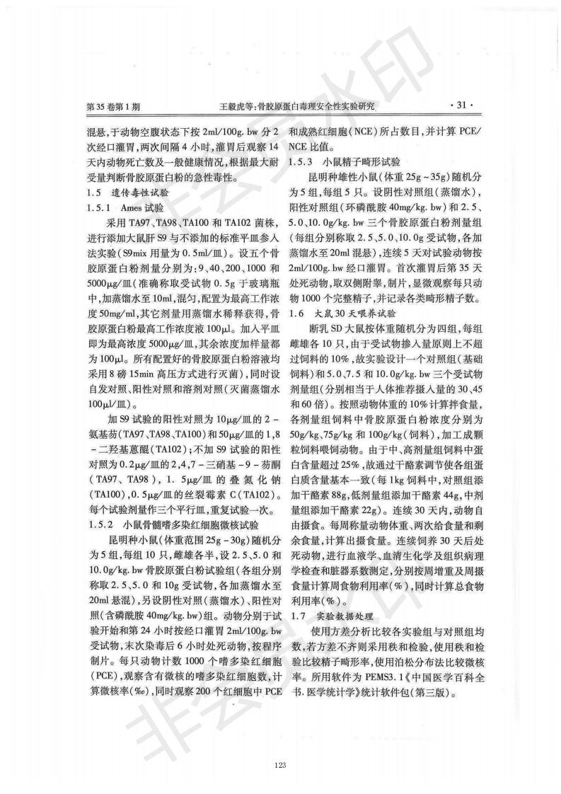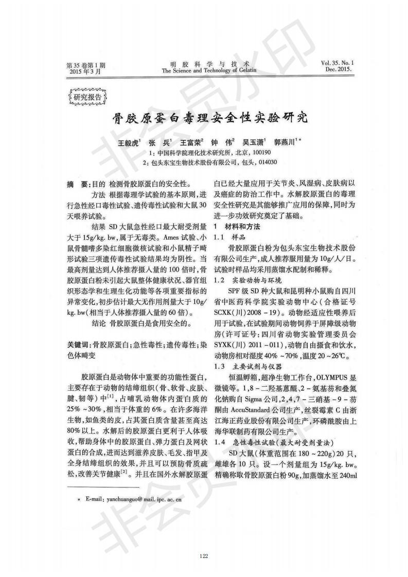 骨膠原蛋白毒理安全性實驗研究